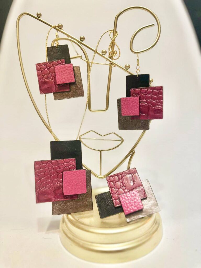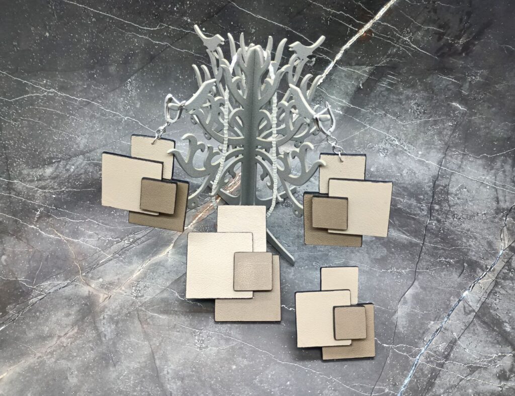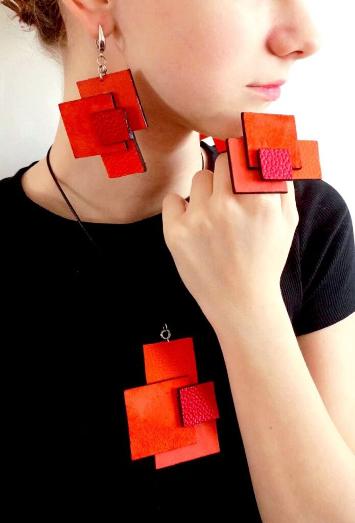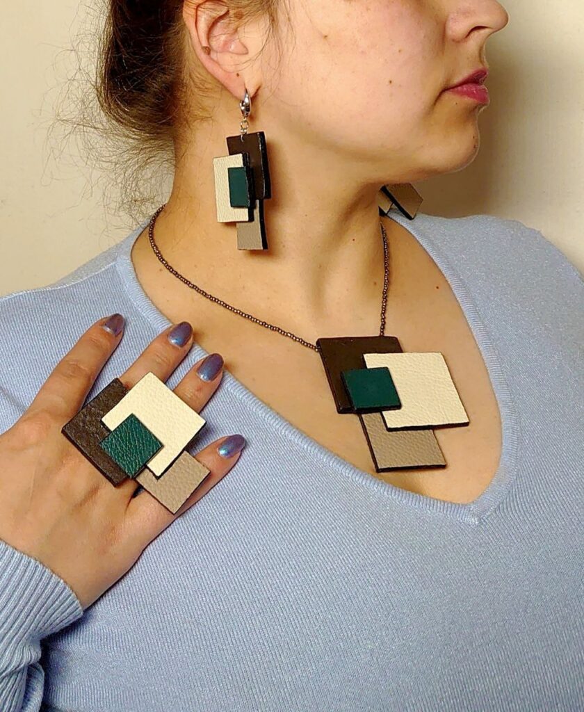 Комплект украшений из натуральной кожи: кольцо, серьги и колье